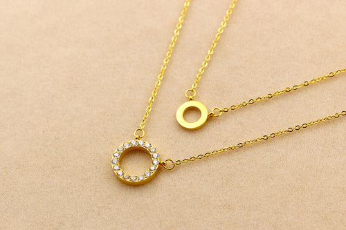 سنيتشَر جولري – قلادة التناغم الذهبي بدائرتين من الستانلس ستيل